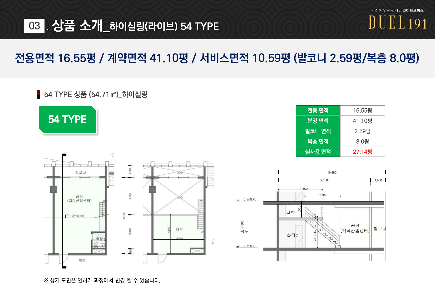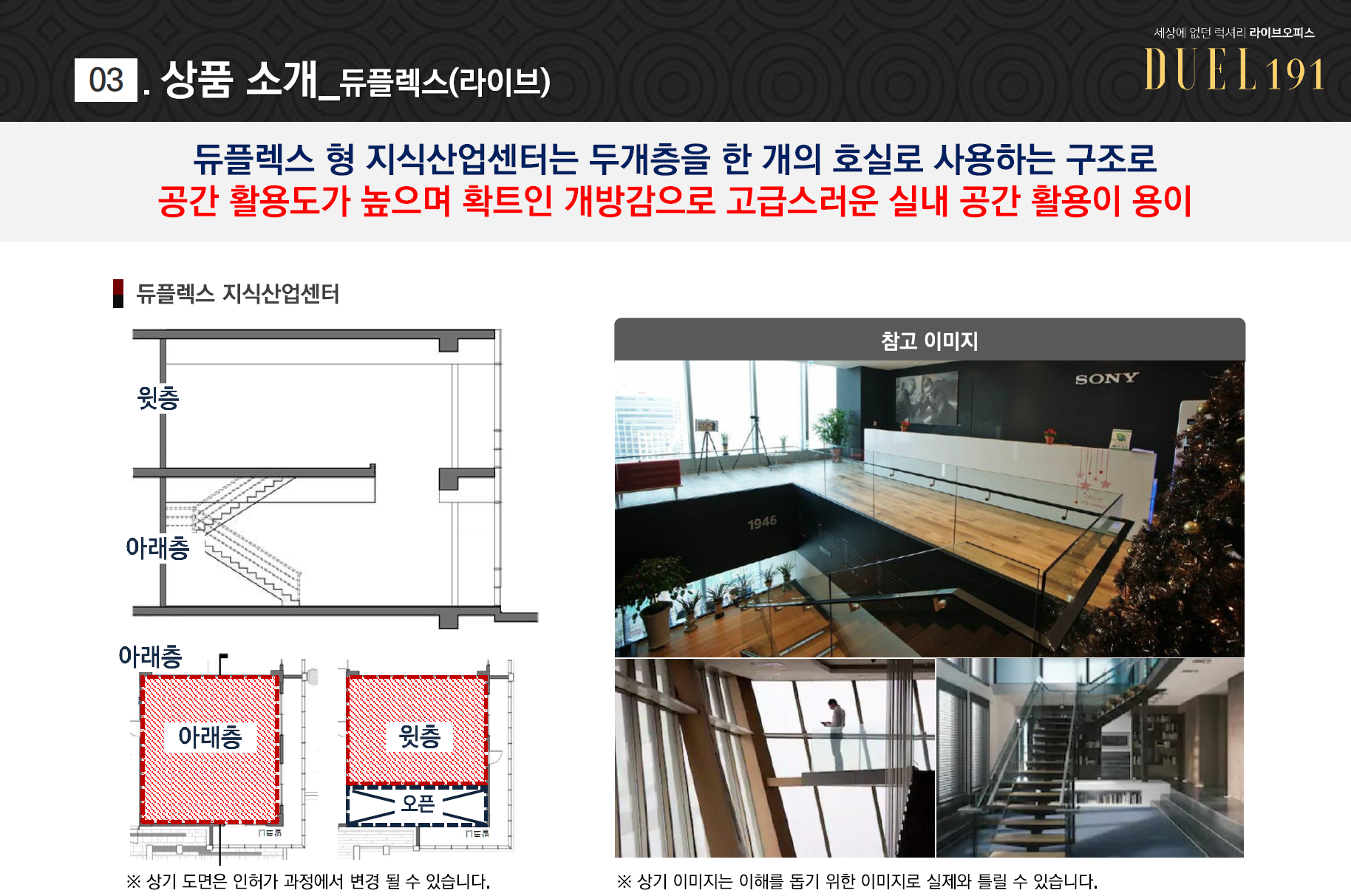 2개 층을 용도에 맞게 활용할 수 있도록 듀플렉스 설계(지상 5층~지상 12층 일부 호실)가 적용됐습니다. 또한 전 호실 발코니를 제공하며, 일부 호실은 2면 발코니 설계가 도입됩니다.