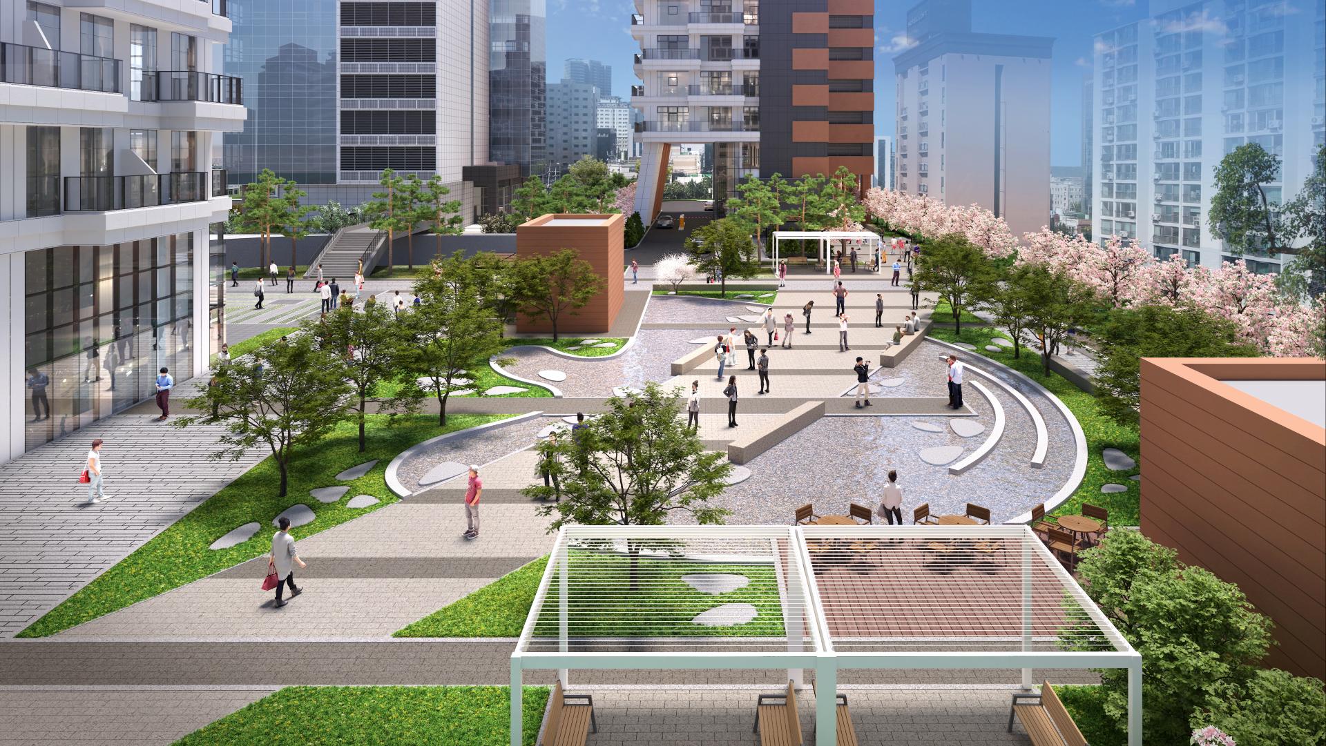 1,2차 단지 합계 연면적 약 108,338.97㎡에 옥탑을 포함해 지상 최고 35층의 랜드마크 타워로 지어집니다.