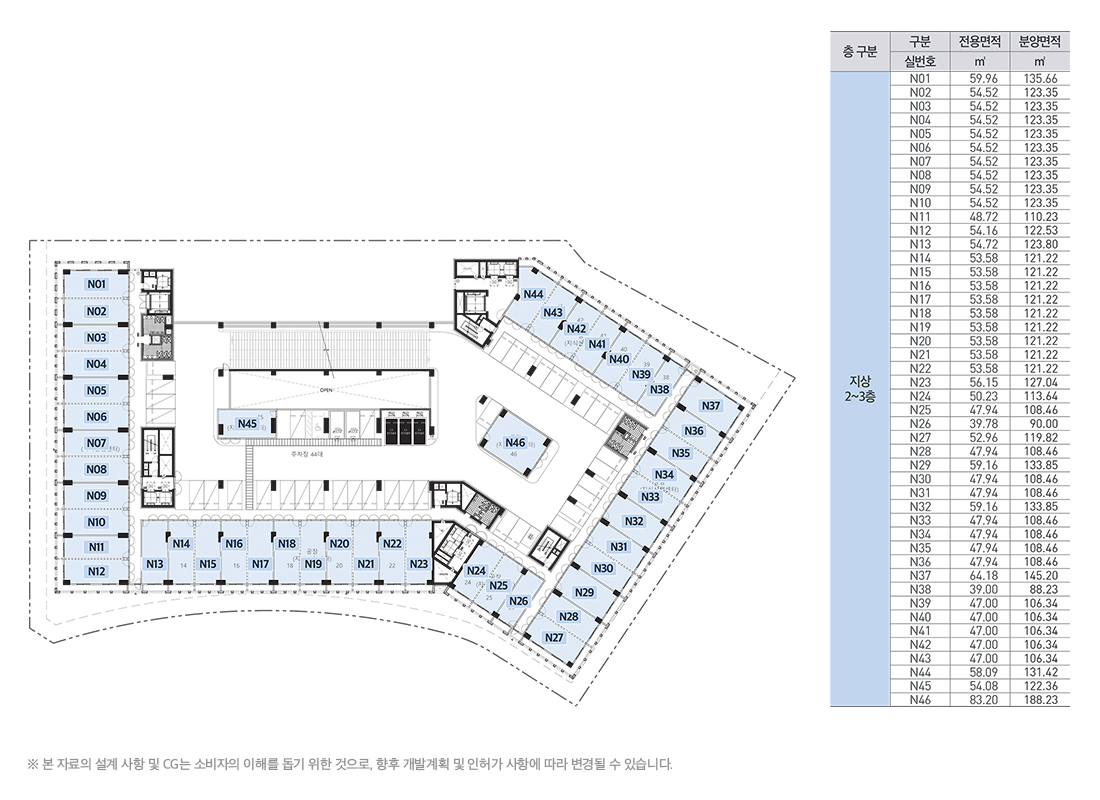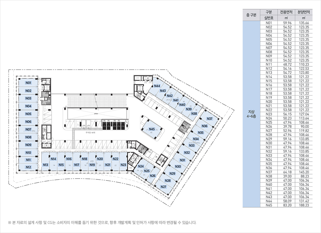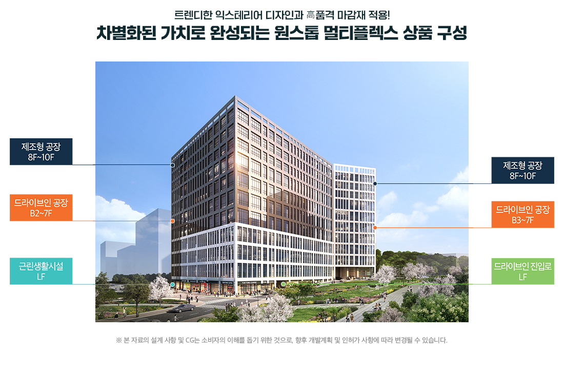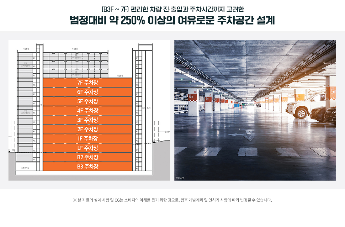 ●건축면적 : 5,848.23㎡ / 1,769.09평 ● 연면적 : 66,548.01㎡ / 20,130.77평 ● 규모 : 지하 3층 ~ 지상10층● 주차대수 : 498대 (법정 193대 / 법정대비 : 258.35%)