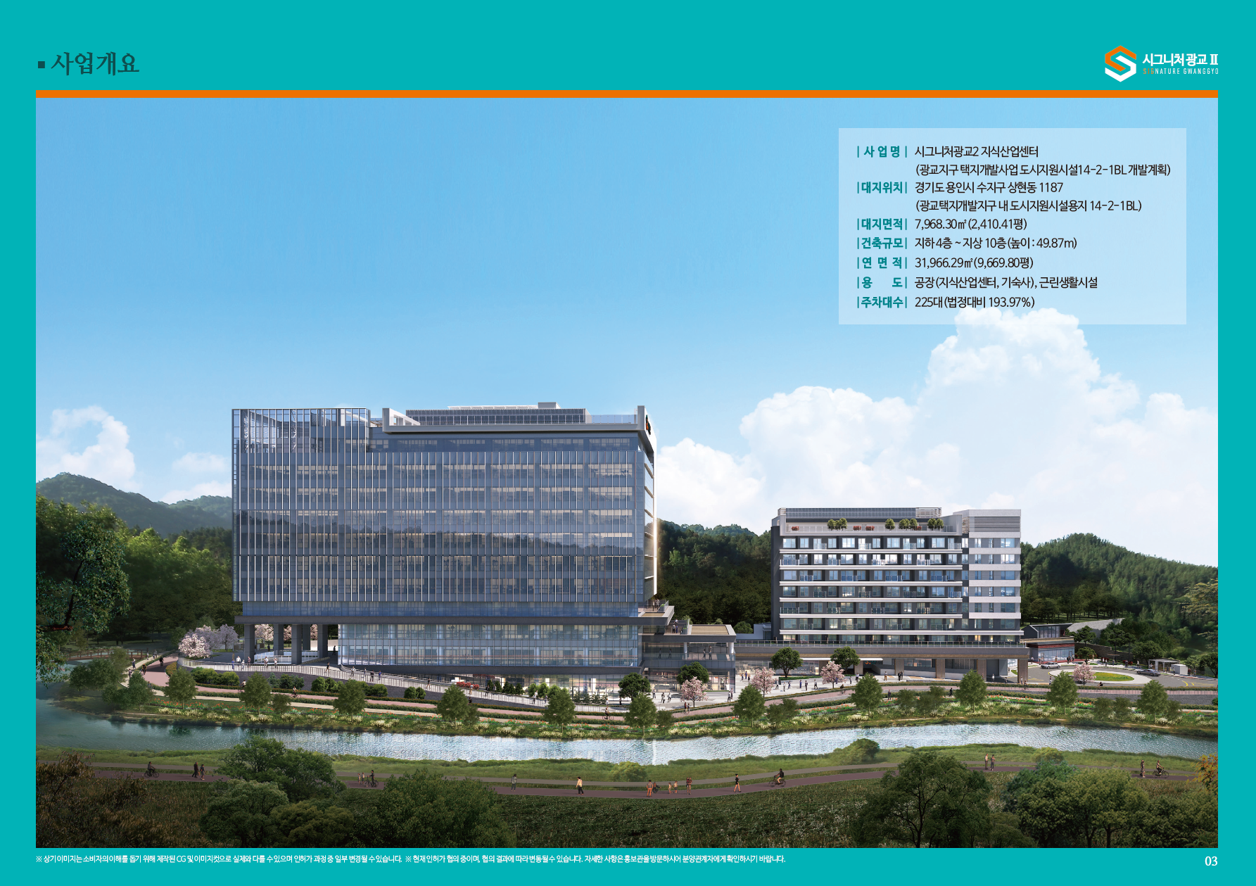 광교택지개발지구 내 도시지원시설용지 14-2-1블록에 들어서는 ‘시그니처 광교 2차’ 지식산업센터는 대지면적 7968.30㎡ 부지에 지하 4층~지상 10층, 연면적 3만2191.80㎡ 규모로 지어집니다.