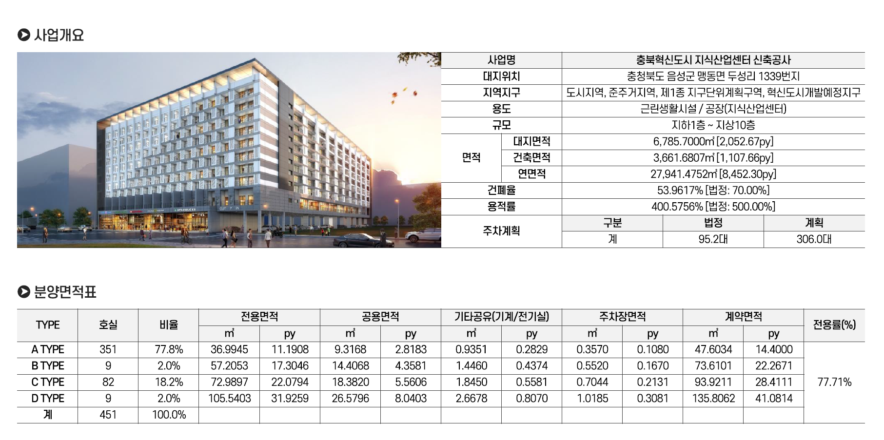 지하1층~지상10층 규모로 총 451개실 규모로 들어서며 스타플렉스에는 스마트 주차시스템을 적용했으며 법정 주차대수 대비 322% 넓은 306대로 넉넉한 주차대수를 확보했습니다.