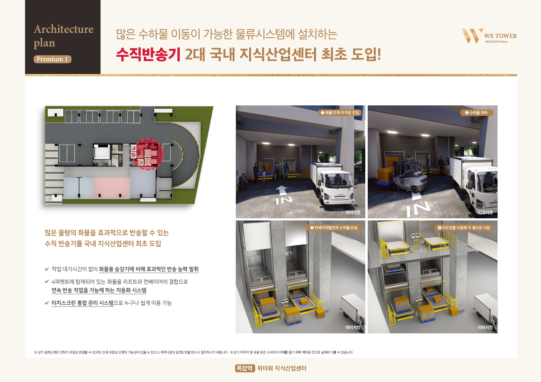 지하3층에서 지상10층의 작은 규모의 지식산업센터이지만, 지식산업센터 최초 수직 반송기 2대와 10톤 화물용 엘리베이터를 적용하였습니다.