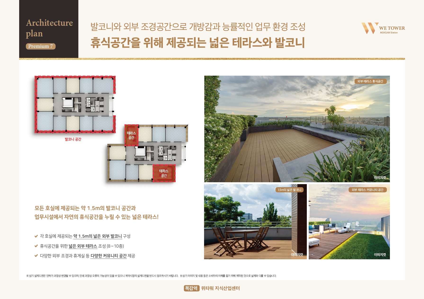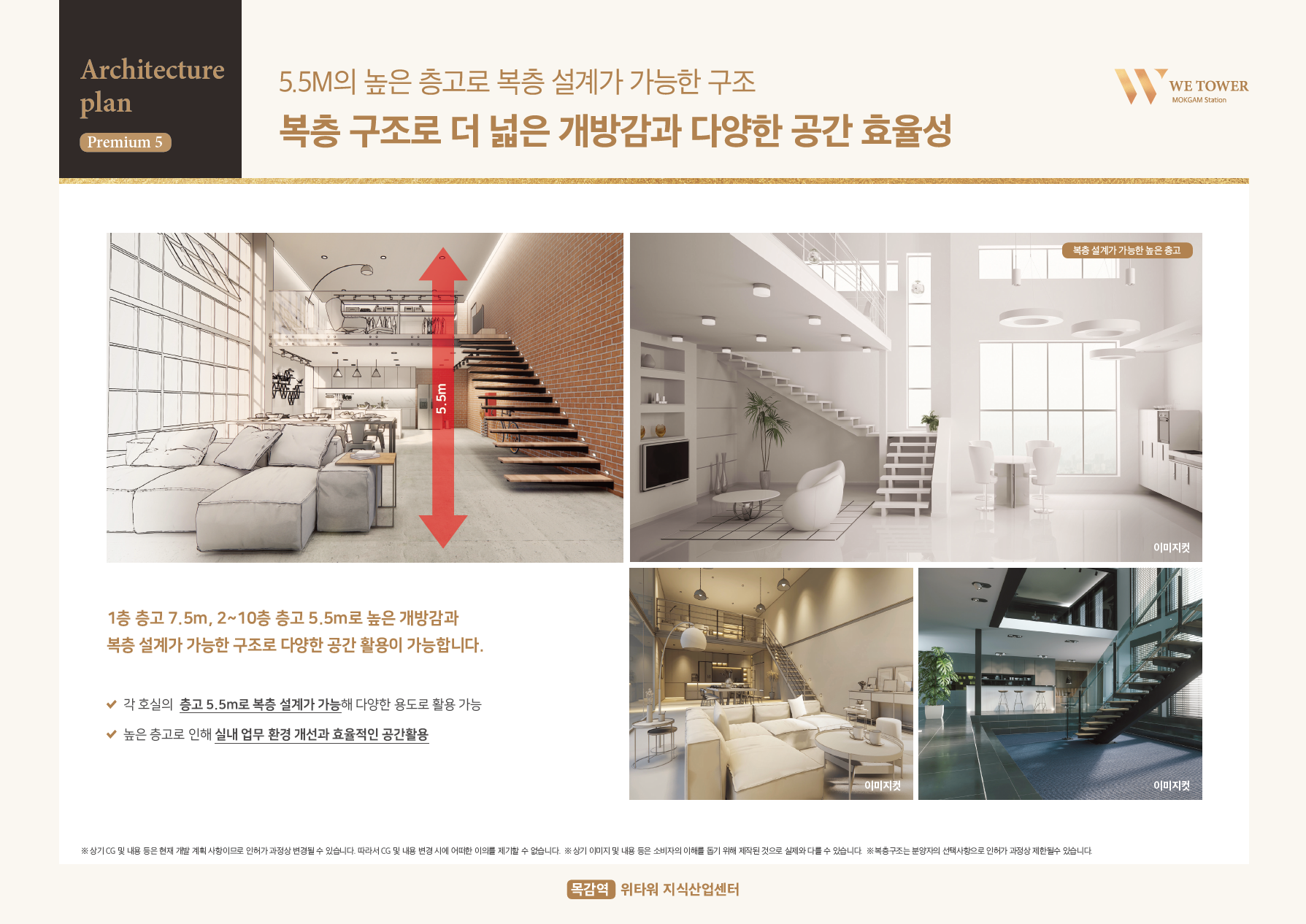1층 층고 7.5미터, 2~10층 층고 5.5미터로 높은 개방감과 복층 설계가 가능한 구조로 이루어져 다양한 공간 활용이 가능합니다. 특히 각 호실에 제공되는 약 1.5미터의 발코니 공간과 외부 테라스(8~10층)는 조경과 커뮤니티 공간으로 제공되어 입주사들의 편의를 높여줄 것입니다.