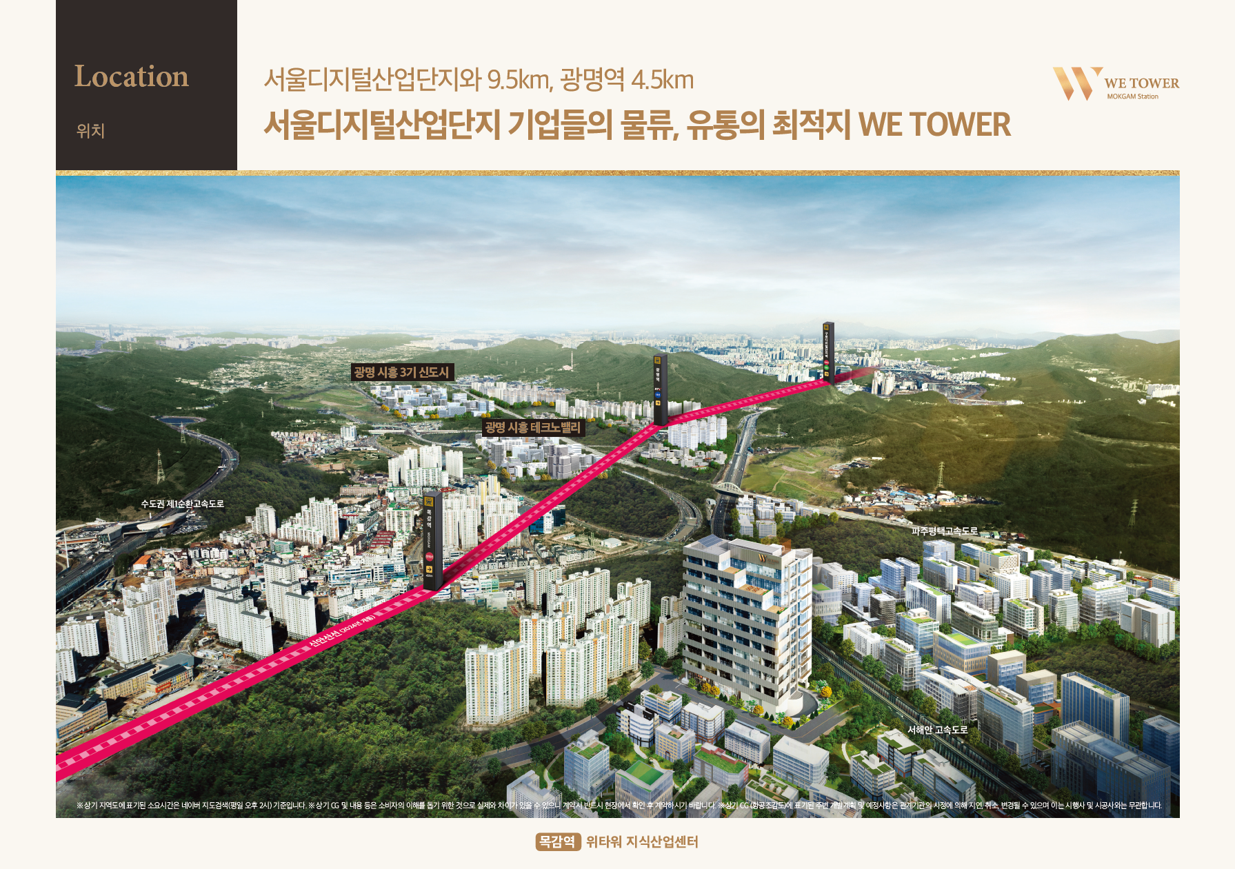 약 450미터 도보 5~6분거리이며, 광명역 1정거장, 서울디지털산업단지는 9.5킬로미터의 거리(차량 20여분)입니다.