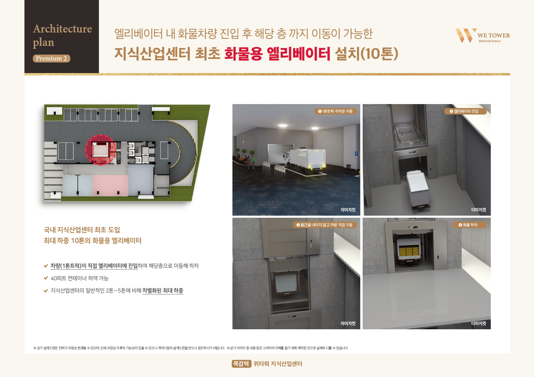 또한 엘리베이터 내 화물차량 진입 후 해당 층까지 이동이 가능한 지식산업센터 최초 10톤의 화물용 엘리베이터를 적용하였습니다. 일반적인 화물용 2~5톤용 화물용 엘리베이터와는 비교가 안되는 차별화된 하중으로 개발되어 졌습니다.