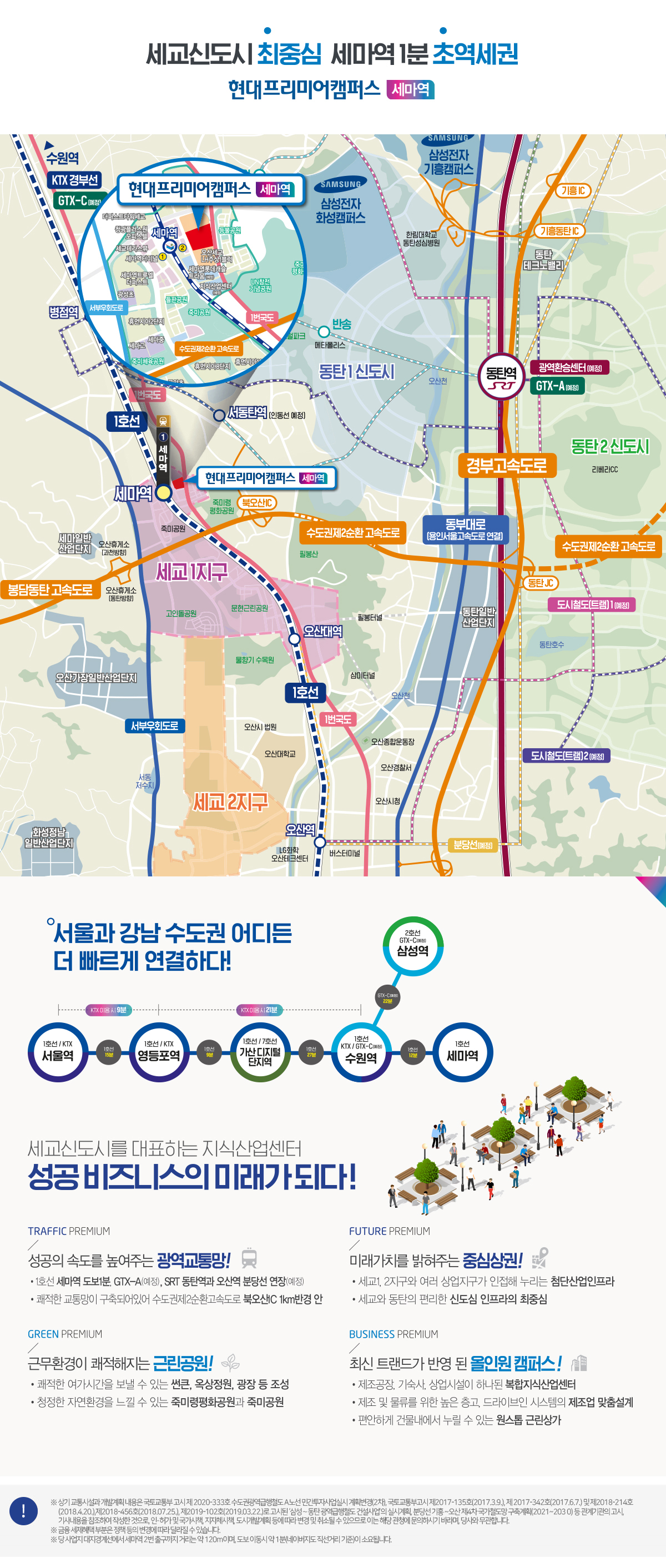 수도권에서는 현대건설이 수도권 전철 1호선 세마역 도보 1분여 거리에 시공 예정인 '현대프리미어캠퍼스 세마역'이 이러한 요건을 갖춘 것으로 평가받고 있습니다.